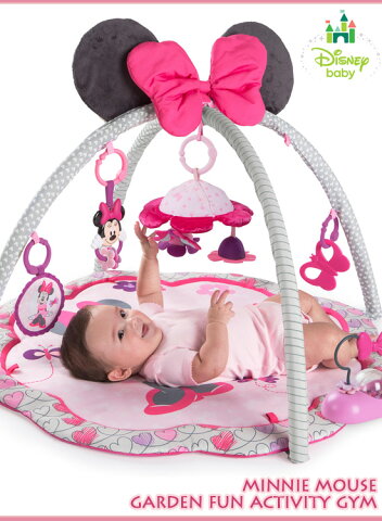 ミニーマウス ガーデンファン アクティビティジム 11097 Disney Baby ミニーマウスのプレイマット 可愛いミニーちゃんがいっぱい!ミニーマウスのプレイジムです! 全体を薄いグレーとピンクでまとめており、トイバーの上にミニーマウスの大きなリボンが付いている、オシャレで可愛らしいデザイン。